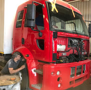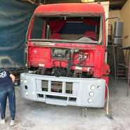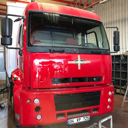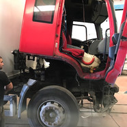 Sağ ön kapı ve sağ bölümlerden hasarlı Ford Cargo 2524 aracımızın kaporta hasarını giderdik ve boyasını yaptık.
